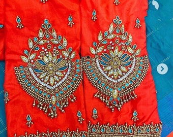 Orange Chandbali Inspired Maggam Blouse Etsy